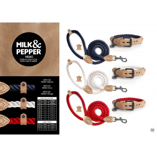Nemo collection, 100% cotton and leather rope collars.Measures from 40cm to 70cmView the size chart in the images section.