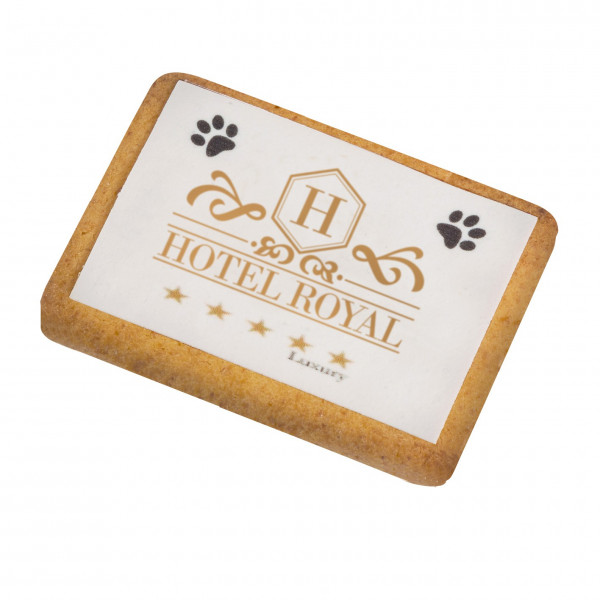 EN: Dolci Impronte – Your Brand – Business card-shaped biscuit 70 g, pack of 10 pieces, customize the bone-shaped shortbread biscuit with your company name printed on edible wafer ; once the order is placed, please immediately send by e-mail a high-resolution JPEG image of your logo ; this product is also one of the many wonderful masterpieces by Dolci Impronte, a high-quality food handmade – one by one – in the Dolci Impronte workshop by our master pastry chefs and individually hand-packed in a food bag decorated with a personalized Dolci Impronte ribbon ; net weight 70 g, Italian product, complementary feed for adult dogs ; features: shortbread biscuit with edible wafer ; composition: flour (soft wheat), fructose, pasteurized eggs, vegetable margarine, honey, starch, glucose syrup, sucrose esters and mono- and diglycerides of fatty acids ; technological additives: preservatives (potassium sorbate 1k202, sorbic acid 1a200, citric acid 1a330), emulsifiers ; sensory additives: flavouring ; analytical constituents: crude protein 8 %, crude fibre 1.9 %, crude fat 11 %, crude ash 0.56 %, moisture 14 % ; instructions for use: serve with fresh water available at all times, up to 10 % of the total daily ration, dosage is indicative ; store the product away from heat sources in a cool, dry place ; produced for Fifty S.r.l., Venezia 30124, San Marco 5278, e-mail: info@dolcimpronte.it