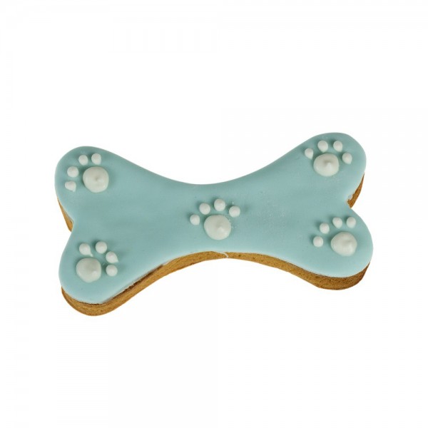 Confezione 3 Sacchetti - Small Bone Rosa 40g Il prezzo si riferisce alla confezione di 3 sacchetti. Biscotto in pasta frolla decorato in azzurro con zampine, confezionato in sacchetto alimentare impreziosito da un fiocco. Ogni biscotto è realizzato in pasta frolla come in famiglia; fatto a mano ad uno ad uno e decorato singolarmente dai nostri maestri...