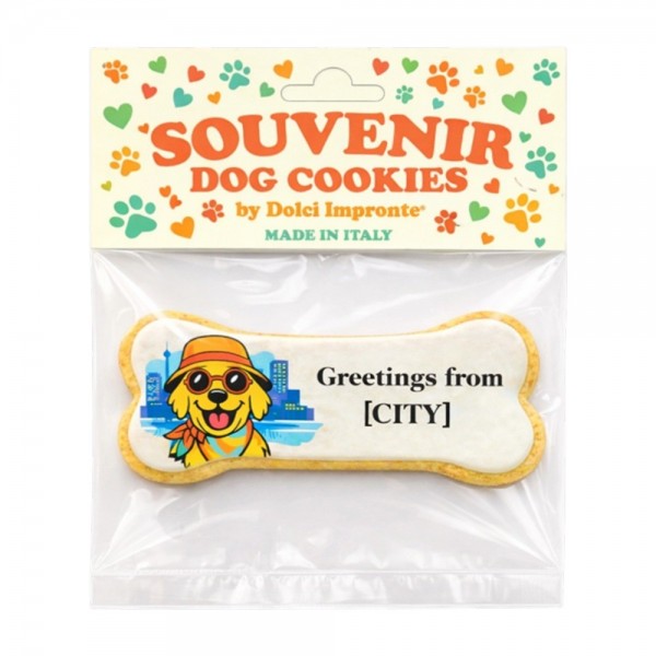 Souvenir City Edition by Dolci Impronte WAGGING TAILS FROM [CITY] Un souvenir che celebra la tua città con un’illustrazione dedicata al mondo pet. Biscotto artigianale formato osso, pensato per i turisti che viaggiano con il proprio cane o desiderano portare a casa un ricordo originale della destinazione. Realizzato in Italia e confezionato singolarmente,...