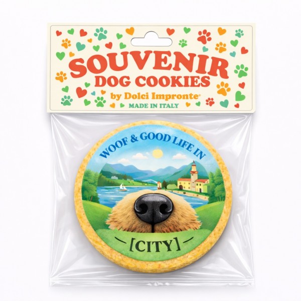 Souvenir City Edition by Dolci Impronte GREETINGS FROM [CITY] Esempio città – grafica personalizzabile Un souvenir per ricordare la tua città con un’illustrazione dedicata al mondo pet. Biscotto artigianale formato osso, pensato per i turisti che viaggiano con il proprio cane o desiderano portare a casa un ricordo originale della destinazione. Realizzato...